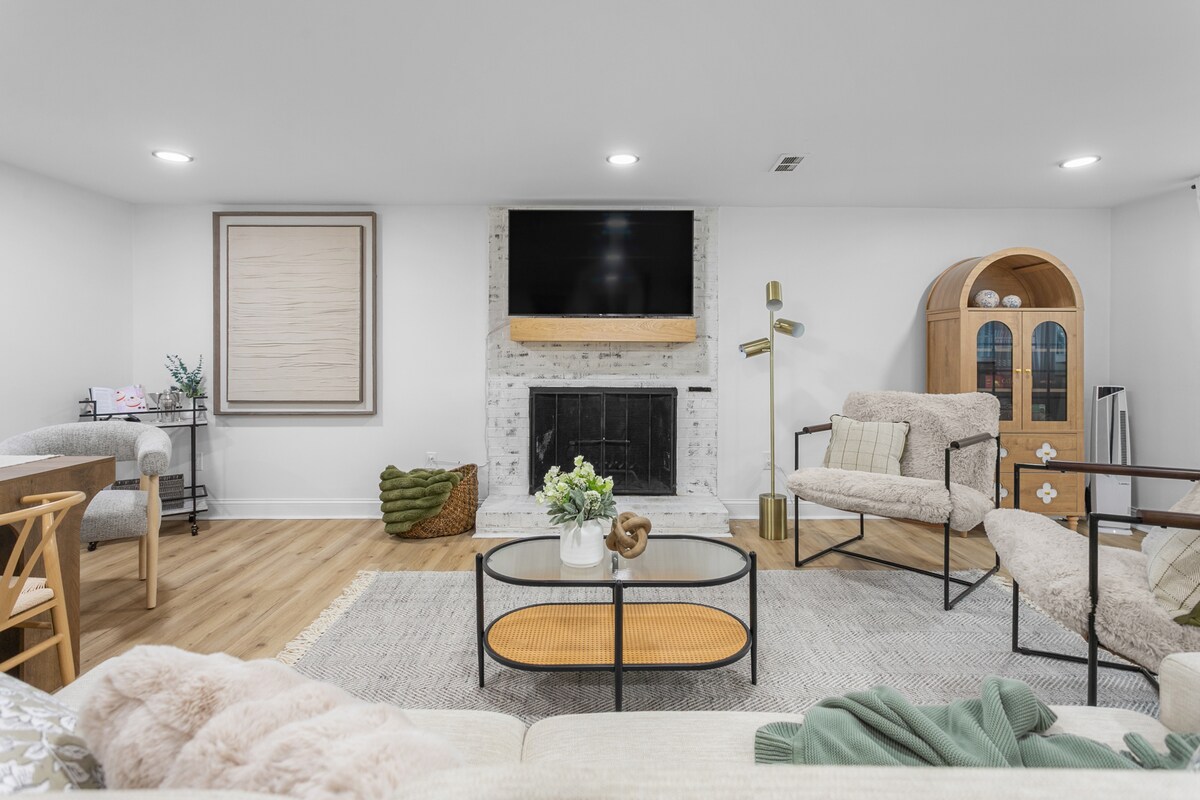 Täielikult sisustatud 2 magamistoa, 1 vannitoaga täiesti privaatne keldrikorrus, kus on hubane elutuba, mängutuba koos piljardilaua, noolemängu ja Xboxiga ning tagahoovis tulease. Sisaldab kahte spetsiaalset parkimiskohta. Mugavused: Nutiteler ja Netflix Kohvimasin, mikrolaineahi, röster ja kuumaõhu fritüür Minikülmik, muusikasüsteem, triikraud ja triikimislaud Märkus: pane tähele, et selles majutuskohas ei ole kööki. Märkus: see on täiesti privaatne üksus eraldi sisse- ja väljapääsuga.