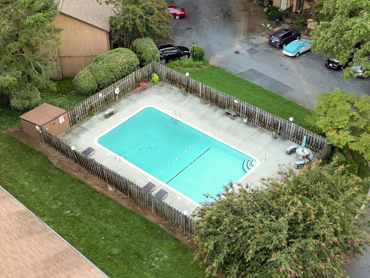 Põgene rahulikku metsaga kaetud puhkekohta selles ainulaadses 2 magamistoaga/1 vannitoas, mis asub majutajate elukoha all Greensboros, NC. Naudi privaatset sissesõiduteed ja sissepääsu ning kiigega kaetud verandat. Ideaalne tööks või lõbutsemiseks, majutuskohas on kiire internet, nutikas teler, hästi varustatud kööginurk, kohandatud puidutööd kaasaegse maalähedase tunde jaoks ja tagahoov lõkkekohaga lõõgastavateks õhtuteks. See rahulik peidupaik pakub ruumi, mugavust ja privaatsust vaikses elamurajoonis.