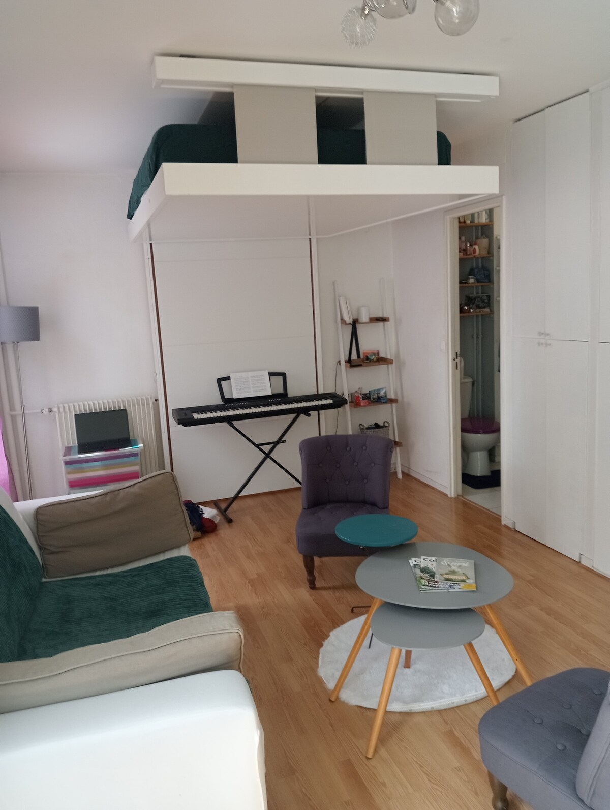 Kena stuudio, väga hea asukoht. 2-minutilise jalutuskäigu kaugusel rer A jaamast Nanterre Préfecture (2 jaama Champs Elysées 'sse) ja poed (Franprix pizzeria boulangerie boucherie sandwicherie jne) 5-minutilise jalutuskäigu kaugusel Pariisi La Défense Arenast (kontserdisaal ja spordiüritused) La Mallini on 15-minutiline jalutuskäik 4-taktiline kaitse 20 min Pariisi südamest (Châtelet). Magamiskohad: clic clac. (kahepoolne C.N.i ja majutuskoha sertifikaat)