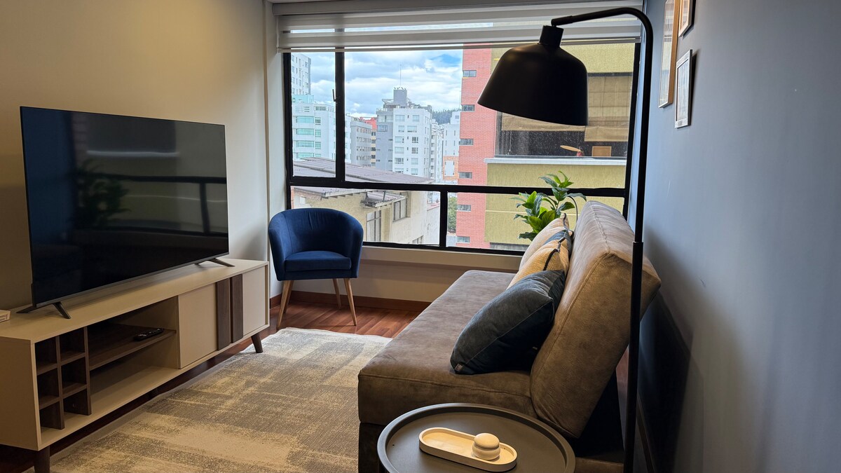 Mugav, vaikne ja kaasaegne sviit, mis asub Monarchi hoone esimesel korrusel, Quito linna parimas piirkonnas ja finantssüdames, varustatud ja sisustatud kõigega, mida vajad, et muuta oma peatumine tõeliseks naudinguks, pankade, restoranide ja kaubanduskeskuste lähedal, sul on kõik käeulatuses koos hoone pakutava turvalisusega, looduslik, avar ja ainulaadne vaade, mille leiad ainult siit. Sa ei tunne, et oled kusagil- tunned end nagu kodus.
