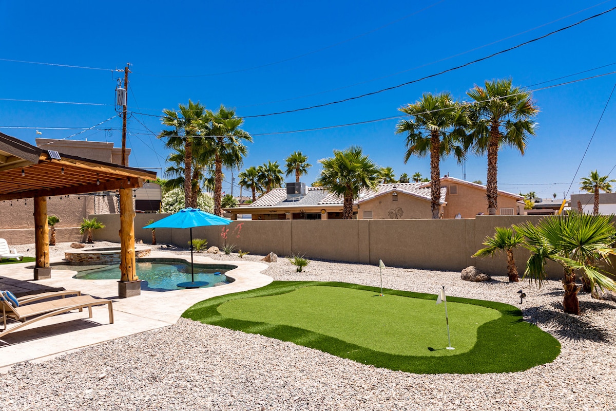 Tere tulemast Ace of Oasisesse, valgusküllasesse puhkemajja, kus on privaatne tagahoov, bassein ja vaade mägedele! Majutuskoht asub kesklinnas ja mõne minuti kaugusel Havasu järvest, golfiväljakust, kasiinost ning London Bridge 'i söögikohast ja meelelahutuspiirkonnast. Kas sa ei taha majast lahkuda? Naudi maasisest basseini (küte valikuline), basseinisisene parkimine, valgustusefektid, kohandatud kümblustünn, varjutatud terrass, grill ja jalgpall. Lõõgastu toas kaasaegse sisekujunduse, interneti ja nutika teleriga.