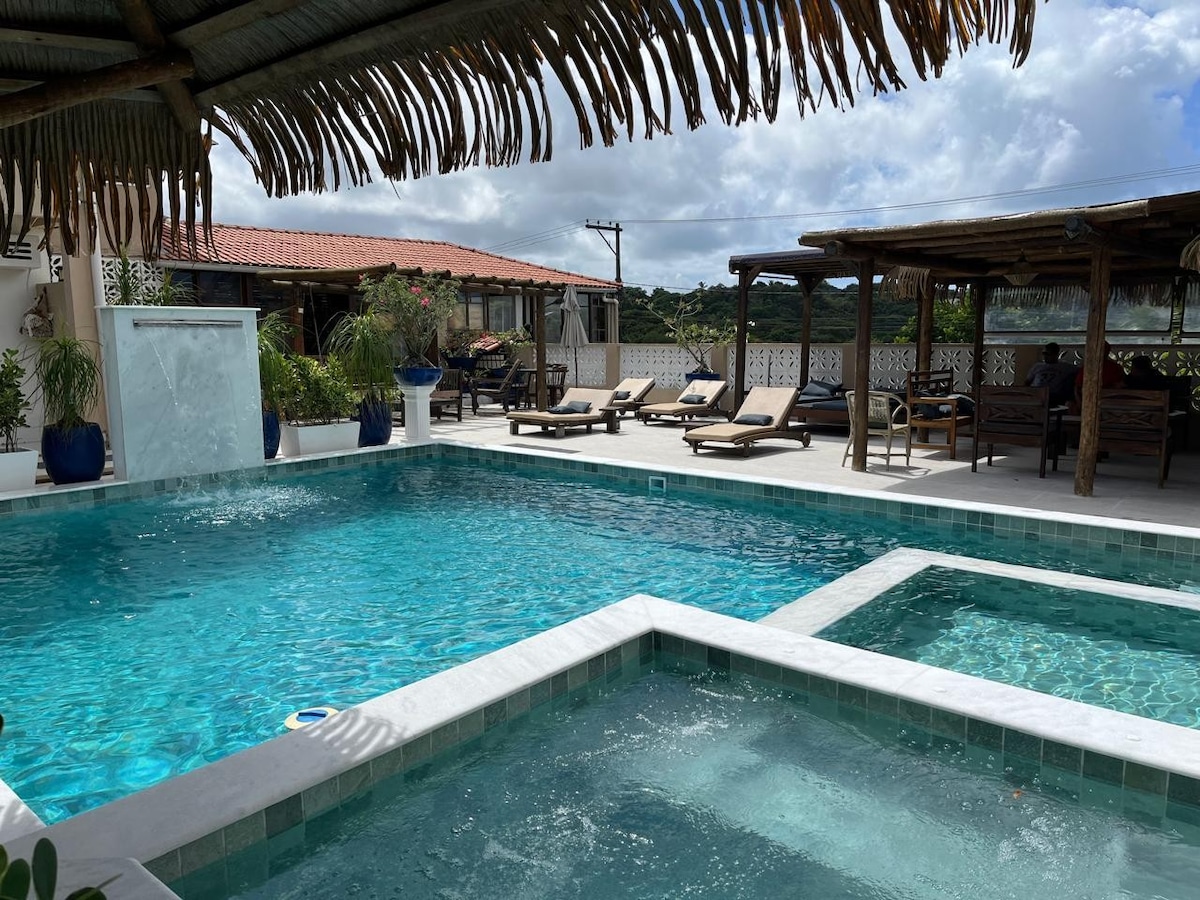 02 sviiti koos kliimaseadmega! , täielikult esimese korruse maja, ilma treppideta. Kevad, rõdu ja privaatse aiaga. Köögis on pliit ja mikrolaineahi. 02 parkimiskohad Suletud korter märja basseini ja terrassiga, gurmeekiosk grilli ja pitsaahjuga, uksehoidja ning ööpäevaringne valve ja mänguväljak Parim Imbassai asukoht 2 min kaugusel Riost ja 5 min kaugusel märtsist, turgude, restoranide, apteegi ja baaride lähedal. Tõeliselt lemmikloomasõbralik! WiFi, kaabeltelevisioon ja Netflix