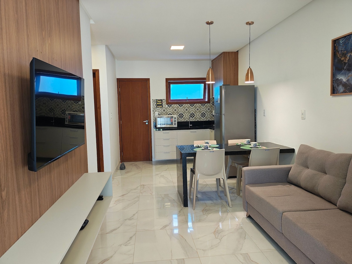 🌴✨Sinu rahu ja päikese varjupaik Imbassaís✨🌴 Tere tulemast meie väikesesse paradiisi nurka! Võluv ja mugav apê, ideaalne neile, kes otsivad puhkust ja erilisi hetki perena. Kahe sviidi ja kõigi konditsioneeriga keskkond sinu mugavuse tagamiseks, tualett, wifi, nutiteler ja palju muud. Väravaga korteris, kus on täiskasvanute ja laste bassein, mänguväljak, kaks vaba kohta ja ööpäevaringne valve. 400 m jõest ja 600 m merest. Siin on suvi igavene ja iga pisiasi tehti kiindumusega. Imbassaí ootab sind! 🌞💛