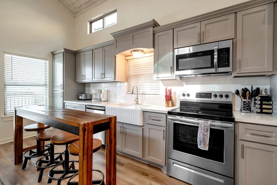 Üle 2 aakri suurune 70 000 gallonine bassein laisa jõe- ja ujumisbaariga, roheline, varustatud kalapüügitiik, 2 lõkkekohta, kaetud verandad, autoport, kaetud terrass ja palju muud! Mahutab mugavalt 10 inimest. Majas on kolm magamistuba ja 10 magamiskohta. Naudi toiduvalmistamist selles GURMEEKÖÖGIS, kus on roostevabad seadmed, graniidist tööpinnad, lihaplokkide saar, veinikülmik, gaasipliit, hommikusöögibaar, potitäide ja palju väikseid seadmeid! Ideaalne majutuskoht suure grupi meelelahutuseks!