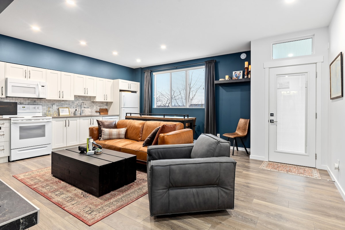 Lõõgastu selles rahulikus ja stiilses esimese korruse sviidis. Naudi oma kahe magamistoaga oaasi Coquitlami rahulikul mäenõlval. Valmis sind vastu võtma on KING-SUURUSES voodi, kus on 500 niidiga Egiptuse puuvillased linad, tujukas elutuba, hubane kamin ja eraldi lugemis-/joogatuba. Teises magamistoas on väljatõmmatav queen-diivan. Maja küljel asuv kruus viib taga asuvasse sviiti. Lülita kamin sisse ja vaata oma lemmikfilmi Samsung Oled telerist.