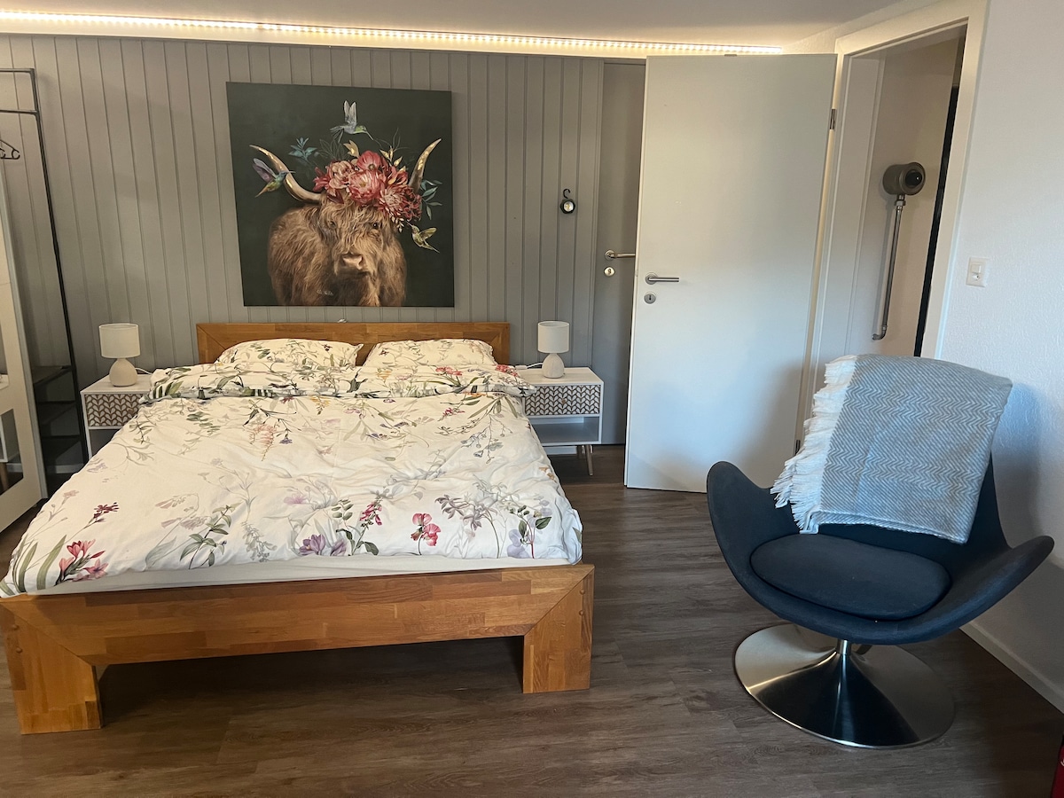 Möbleeritud stuudiokorter, kus on 1 tuba - 30 m2 Asub meie maja esimesel korrusel, kust pääseb otse aeda ja vaatega järvele. Vaikne ja roheline elurajoon järve, poodide ja raudteejaama lähedal. ***Linnamaks 4,20 Šveitsi franki inimese kohta öö kohta, mis tuleb tasuda kohapeal ***