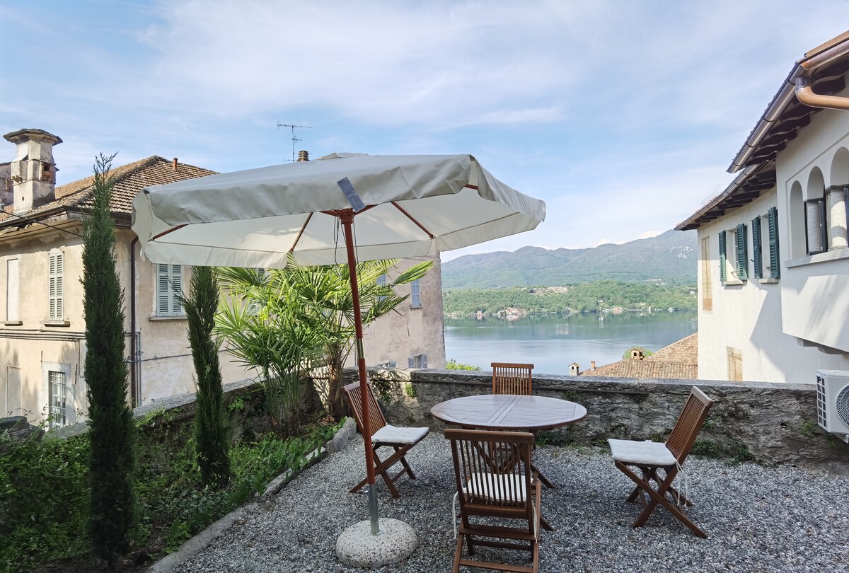 A two rooms apartment in the heart of the town.Unique for its view of the lake and the little San Giulio's island. ABSOLUTELY WONDERFUL! its position in the central square of the little town of Orta offers to the turists shops, restaurant and the view
