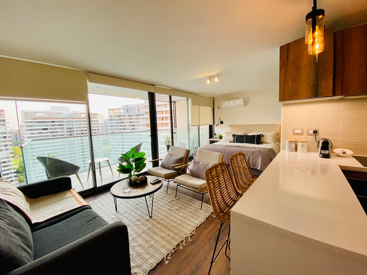 Ilus ja mugav stuudiokorter Parque Araucost ja Clínica Alemanast mõne sammu kaugusel. Naudi hubast ja mugavat peatumist Las Condes 'is. Meie majutajad on ühe klõpsu kaugusel! - Ümbritsetud kohvikutest, restoranidest ja luksuspoodidest - Mugav eriti lai kaheinimesevoodi ja 2-kohaline diivanvoodi -Köök täielikult varustatud - Kiire internet - Väli- ja sisebassein - Jõusaal - turvalisus ja kontrollitud juurdepääs Ideaalne: äri- või lõbutsemiseks Inimesed, kes otsivad turvalist ja vaikset asukohta