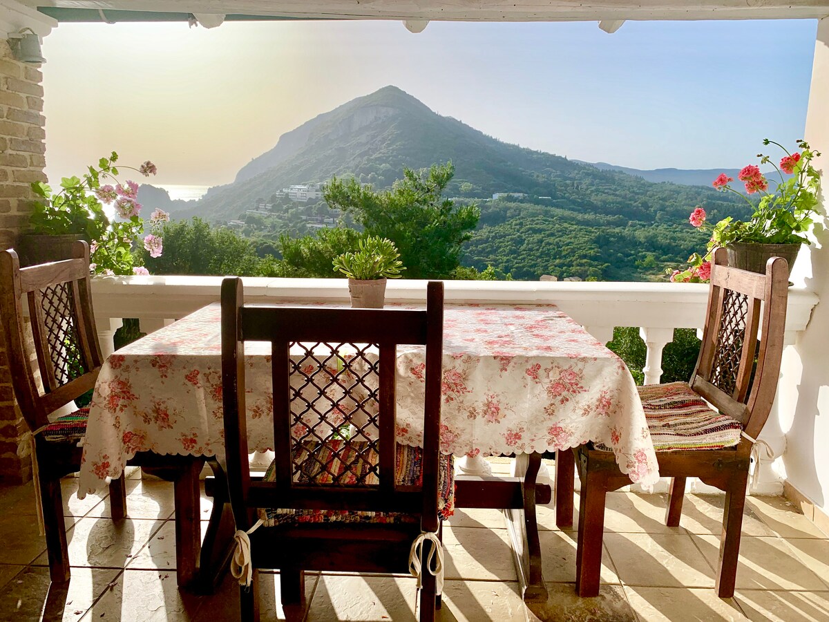 This house was recently built in the middle of olive groves and has a fantastic, panoramic view of the sea and the nearby islands. This makes this place a paradise for anyone looking for peace and nature. Every evening you can enjoy the most beautiful sunsets on Corfu while you dine al fresco. If you prefer to go to a restaurant then the beautiful village of Afionas (within walking distance) with its many restaurants is highly recommended.