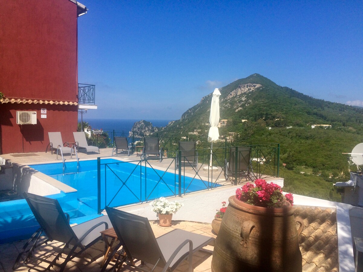 Hiljuti ehitatud privaatne bangalo stuudio, kust avaneb suurepärane vaade Paxos-Antipaxose ja Korfu saartele! Stuudio on iseseisev ja sellel on privaatne terrass. See asub vaid mõne meetri kaugusel basseinist! Sellel on kaheinimesevoodi, täielikult varustatud köök ja privaatne vannituba.