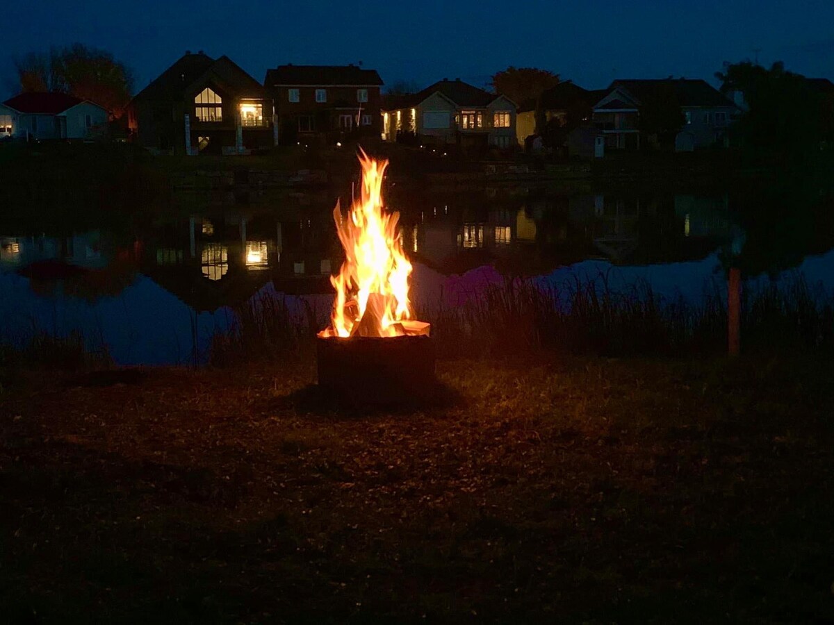 Bienvenue au Castel, notre grand et chaleureux chalet au bord du Lac Saint-François. ♥ Avec plus de 2 500 p² de surfaces habitables, notre chalet peut recevoir vos vacances en famille. Relaxez au bord du lac et profitez d'un feu pour vous réchauffer! ✶ À 35 minutes to Alpine Ski Resort Mont Rigaud ✶ Vue à couper le souffle ✶ Grande Terrasse Privée aménagée ✶ Gigantesque Terrain pour vos événements ✶ Foyer intérieur + Espace Feu extérieur en été. ✶ Table de billard