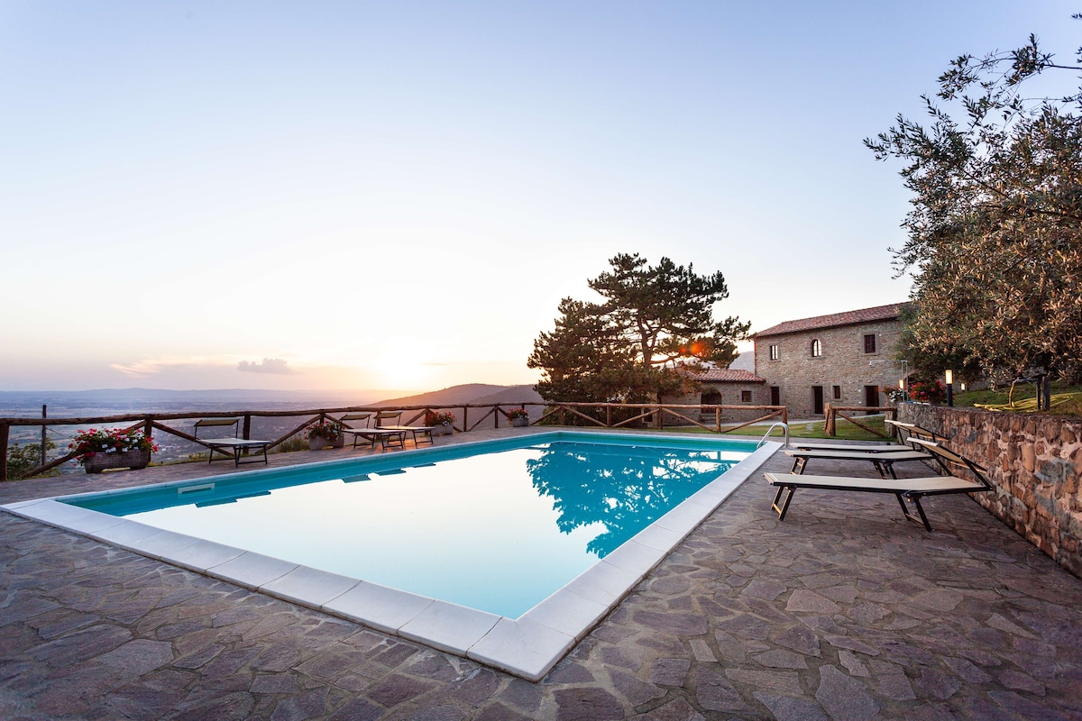 Maja asub Cortona mäel, täielikult renoveeritud, koosneb 3 kaheinimesetuba magamistuba, 2 vannituba ja köök ja söögituba avatud ruumi. See asub 5 minuti kaugusel Cortona ajaloolisest keskusest ja suurepärases asukohas, et jõuda Toscana ja Umbria kõige ilusamate ja iseloomulikumate linnadeni, nagu Pienza, Montepulciano, Castiglione del Lago linnadesse, nagu Firenze, Arezzo,Siena ja Perugia. Kohustuslik turismimaks, mida makstakse kohapeal (2,50 € inimese kohta 4 päeva jooksul)