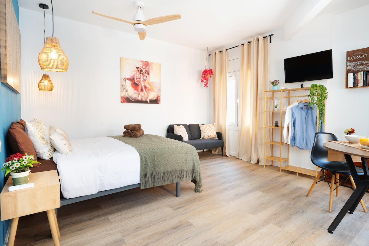 Hubane stuudiokorter 8 minuti kaugusel rannast ja 20 minuti kaugusel Barcelona kesklinnast
