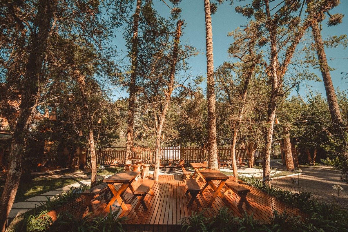 HOMMIKUSÖÖK EI SISALDU BRONEERINGUS: Standardkorv: R$ 40 inimese kohta | Gurmeekorv: $ 60 inimese kohta La Brume Lodges pakub enamat kui ainult majutust, ainulaadset elamust! Meie sviidid asuvad metsakeskkonnas, kus araucaria on koduks piirkonna oravate ja mitmele lindude perele. Majutuskoht koosneb 15 sviidist ja 6 haagisest, mis on mõeldud maksimaalse mugavuse ja hubasuse pakkumiseks.