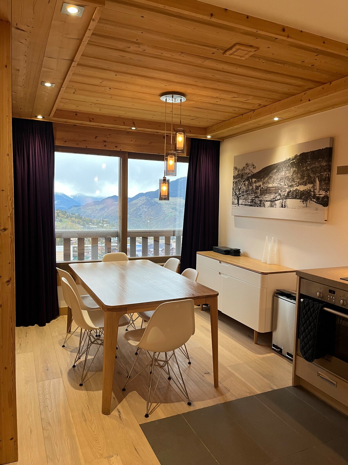 Naudi imelist vaadet meie terrassilt 2023. aastal täielikult renoveeritud korteris, mis asub Courcheveli küla keskel nõlva ja suusatõstuki ees ( üle tänava ) Üks suur elutuba ühe murphy-voodiga (2 inimest) ja diivaniga ( 2 inimest), täielikult varustatud köök, rõdu Lähedal asuvad poed, baarid, restoranid ja avalik parkimine. Voodipesu ja rätikud ei ole saadaval .
