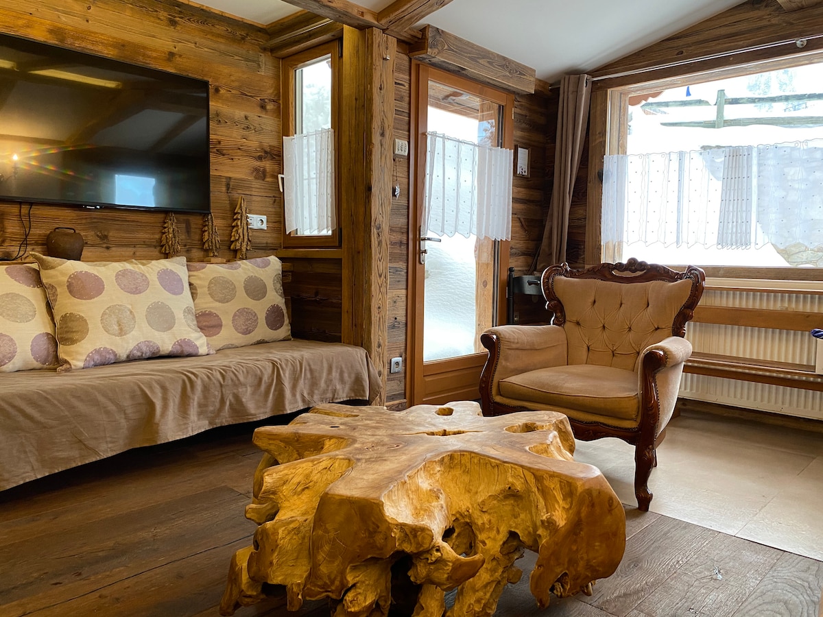 1850. aasta Courchevel, renoveeritud 60 m2 suurune võluv korter. 1 magamistuba teleriga, duširuum (hamam )WC 1 majake, 2 inimese voodi, teler 1 magamistoaga majake, 2 üheinimesevoodit ja teler 1 duširuum 1 eraldi tualett pesumasinaga 1 varustatud köök ( külmik, nõudepesumasin, induktsioonahi, küttekeha...) Elutuba (kaheinimesevoodi) suure lameekraaniga. terrass nurgakapp suuskadel Ümbruskonna jalamil. WiFi kaetud parkimine