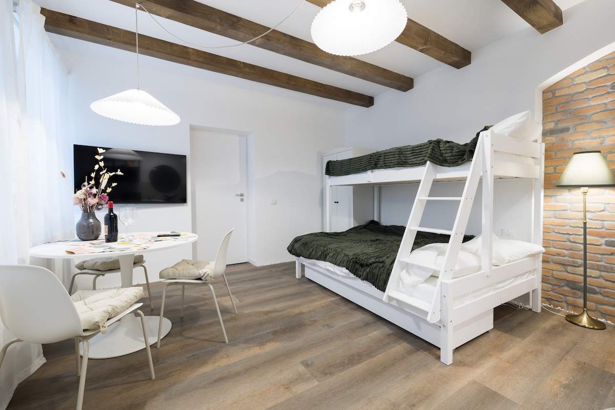 Stiilne korter uues hoones, mis pakub majutust kuni kahele külalisele. Korter pakub sulle rahulikku peatumist, pakkudes samal ajal kiiret ja mugavat juurdepääsu kesklinnale. Enamik ajaloolise kesklinna peamisi vaatamisväärsusi, sealhulgas palju poode ja restorane, on umbes 10 minuti kaugusel. Korteris on olemas kõik mugavused, mida vajad mugavaks peatumiseks, sealhulgas tasuta wifi, kaabeltelevisioon, kliimaseade, täielikult varustatud köök ja pesumasin.