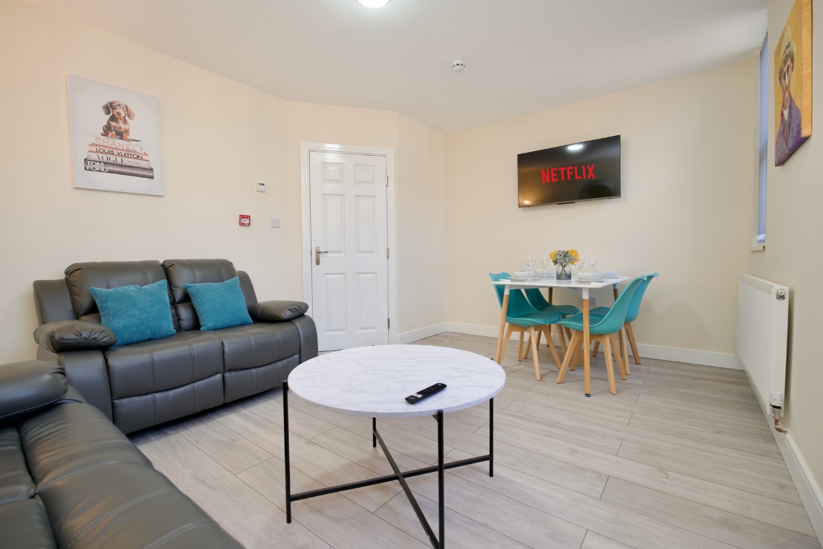 Please note the property has two floors and requires climbing stairs, so it may not be suitable for wheelchair users or those with mobility issues. Coventry Comfort Stays presents: 'Cosmopolitan Comforts Flat' ☆Modern & well equipped ☆Spacious Apartment ☆Accommodates 3 people ☆Amazing location for the city centre (Coventry University, Belgrade Theatre, Coventry Transport Museum and the Train Station) ☆Fast Wi-fi speed ☆Essentials included ☆Netflix included Maximum of 3 people