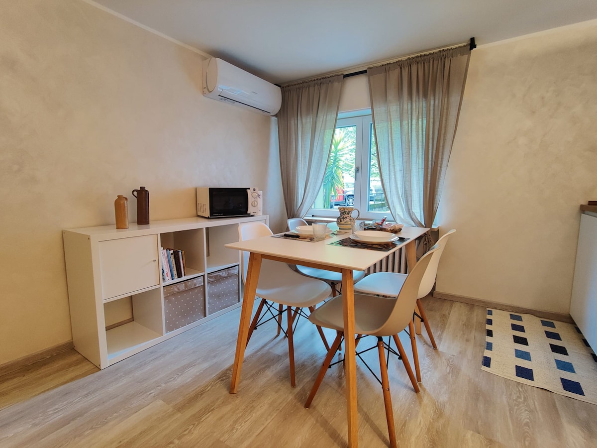 Uus korter, ehitatud ja sisustatud kaasaegses stiilis isikliku autoparklaga. Köök ja elutuba on avatud ruumis ja väga valgusküllased. Terrassilt pääseb otse järve randa ja laste mängualale. Vähem kui 5 minutit jalgsi jõuad teisele rannale Abbadia Lariana, rongijaam, ja matkatee: "Sentiero del Viandante". Kauplused, apteek, baarid ja restoranid on korteri lähedal, 10-15 minutit jalgsi.