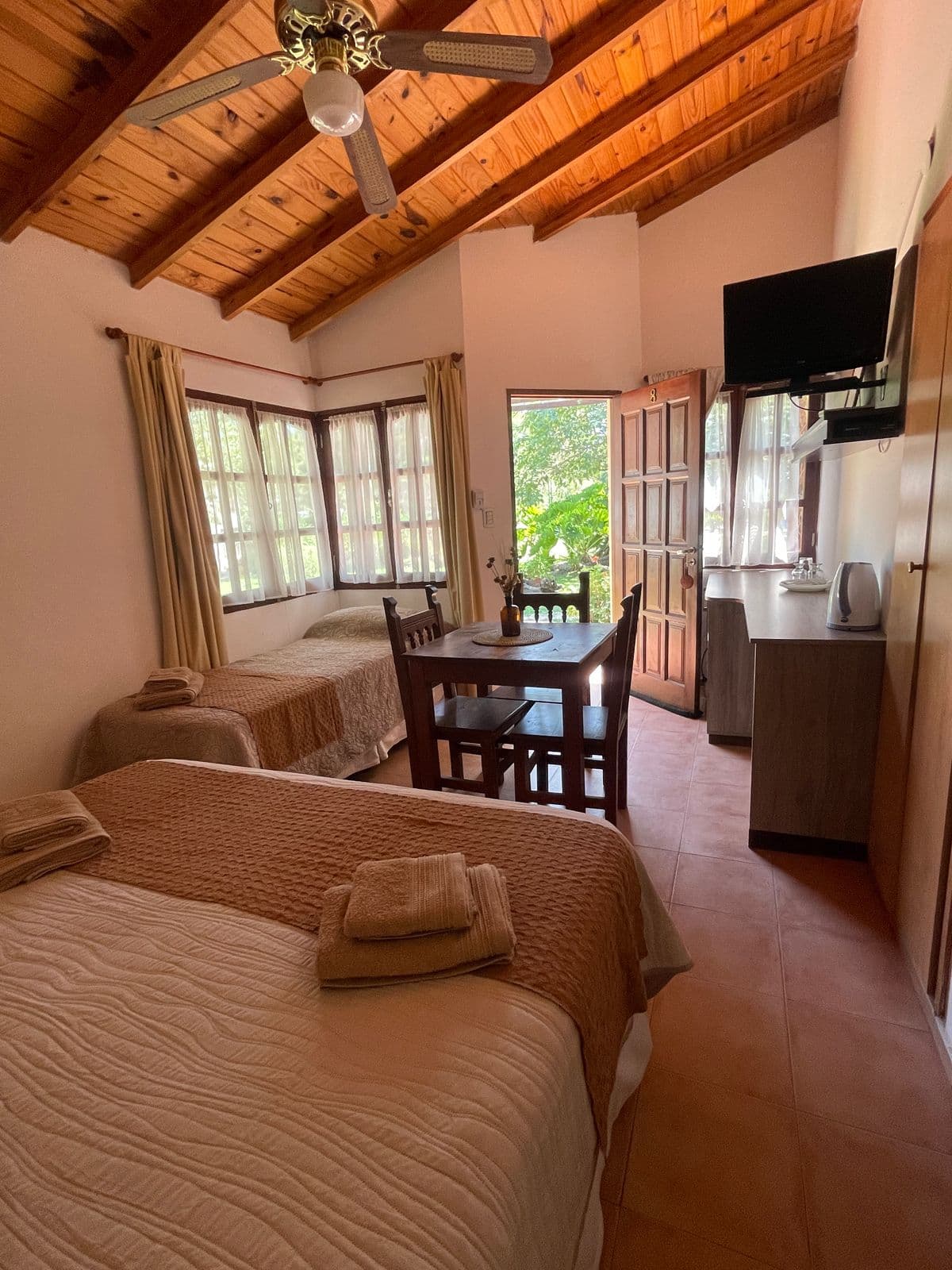Väike rõduterrassiga korter, mis asub Las Rosase allee südames San Marcos Sierras. Mõne kvartali kaugusel külajõest. Sinna pääseb trepist väljaspool peamaja, sellel on suur rõduterrass vaatega aiale, kraavile ja meie paljudele viljapuudele. Korteris on: väike elutuba silloniga, varustatud köök, külmik, kütteseade, vannituba dušiga, valge voodipesu, tuba ühe kaheinimesevoodiga, üks üheinimesevoodi, placares, voodipesu.