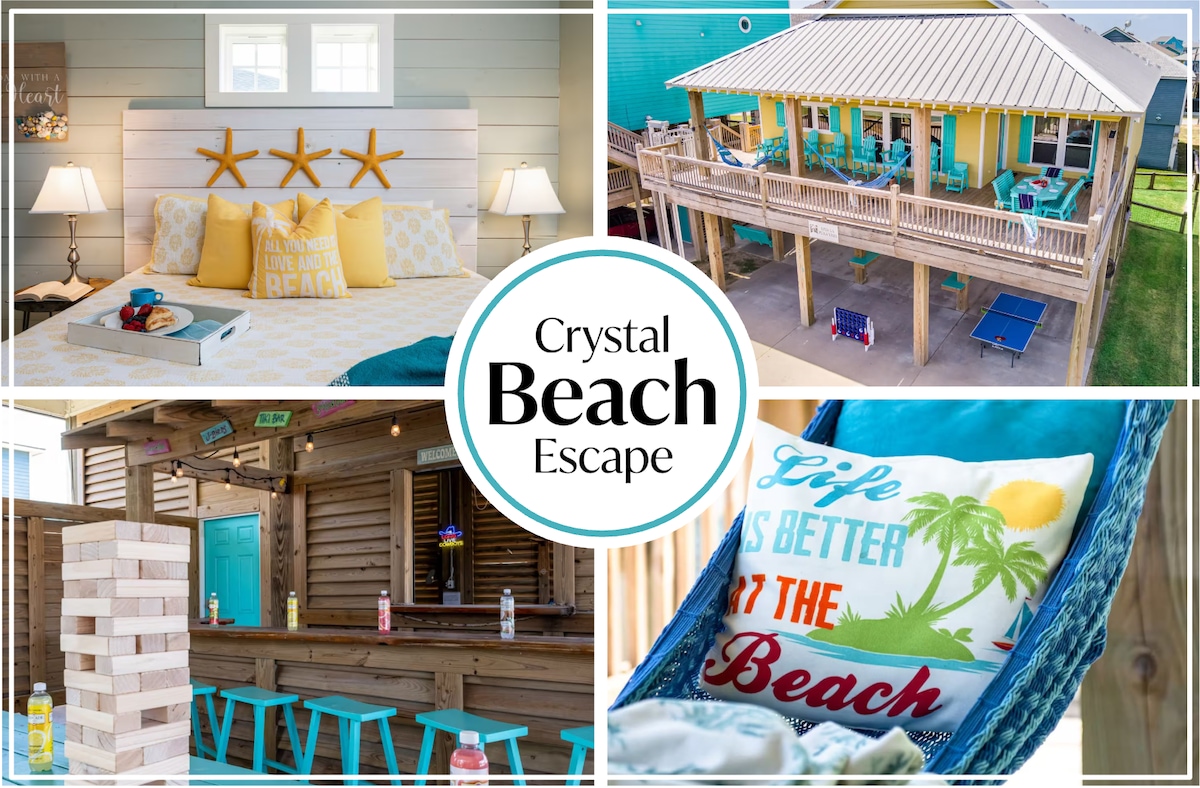 Ranna juurde jõuad 1-minutilise jalutuskäiguga. Vaade rannale, seitsmeinimeline LED-mullivann, suur terrass 12 istekohaga, tulease ja avar poole aakri suurune hoov. Küpseta õues Blackstone'i ahjus, suitsuahjus/grillis või Breeo restil. Välisvihmadušš, kiire Starlinki Wi-Fi, nutitelerid, pesumasin/kuivati, parkimine ja 2. taseme universaalne elektrisõiduki laadija. Täielikult varustatud, pere- ja lemmikloomasõbralik majutuskoht Crystal Beachis.