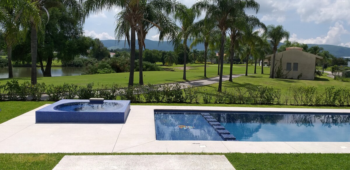 Esimesel korrusel on neli iseseisvat korterit, 101 ja 102 asuvad esimesel korrusel, 201 ja 202, kust avaneb suurepärane vaade järvele ja golfiväljakule. Oleme Club de Golf PARAÍSO MAAKLUBIS, mis asub Emiliano Zapatas, Morelos pakub välibasseini, aeda, mullivanni, järve ja mägedele ning asub 60 km kaugusel Taxcost ja 27 km kaugusel Xochicalcost. Jagatud alad on bassein, aed ja mullivann.