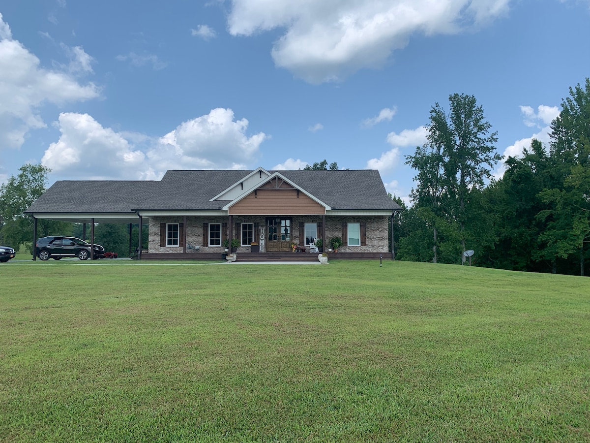 Puhka maal, mis aitab sul lõõgastuda ja lõõgastuda. Ainult kahe miili kaugusel ajaloolisest Dicksoni kesklinnast. Rohkem kui oodatud! 2000 ruutmeetrit. Ft: 2 magamistuba;2 jalutuskäiku duši all;3 voodit; täiendav madrats külalistele 7/8;täisvarustusega köök; avar elutuba; 5 lamamistooli;söögituba; pesuruum;mängutuba autentse kolledži/NFL-i varustusega. Kohvibaar/s'more ; välikaminala. Naudi kalapüüki, mänge või lihtsalt jaluta meie radadel. Ainult 30 miili Nashville 'i