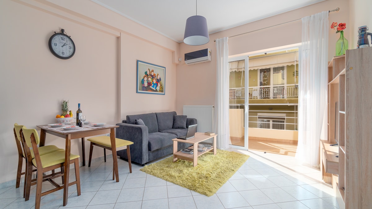 ***Αυτό το διαμέρισμα συμμορφώνεται πλήρως με τον Ν. 5170/2025*** Spacious and comfortable apartment conveniently located in Neos Kosmos, halfway between the beach and the city centre! Your furry friends are more than welcome; please let me know if you will be traveling with a pet !