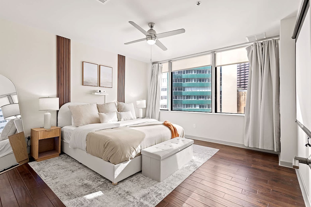 Luksuslik Dallase kesklinna korter imeliste vaadetega Tere tulemast meie luksuslikku 1 magamistoaga 1,5 vannitoaga korterisse Victory Parki südames Dallase kesklinnas. See põrandast laeni ulatuvate akende ja erakordse asukohaga vaid mõne sammu kaugusel American Airlines Centerist asuv korter pakub täiuslikku kombinatsiooni mugavusest, käepärasusest ja hingematvatest vaadetest. Olenemata sellest, kas oled linnas mängimas, kontserdil või avastamas kõike, mida Dallas pakub, on see ideaalne kodu kodust eemal.