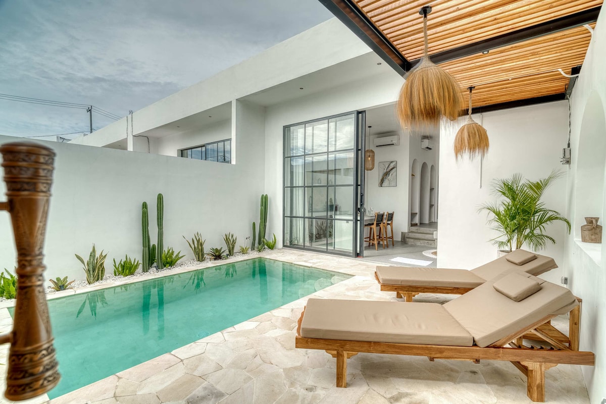 See uhke villa, mis valmis 2023. aasta detsembris, stiilse Vahemere esteetikaga, avatud planeeringuga või täielikult suletud eluase, väljas söömine basseini ääres ja privaatne bassein rikkaliku päevitusalaga. See villa köidab sind oma vapustava disainiga ja muudab ideaalse koha romantiliseks puhkuseks! * Suurepärane asukoht - vähem kui 10 minutit Batu Bolongi rannani, lühikese jalutuskäigu kaugusel on suurepärased kohvikud ja restoranid * Kiire stabiilne wifi * Nutikas teler magamistoas * Igapäevane koristamine