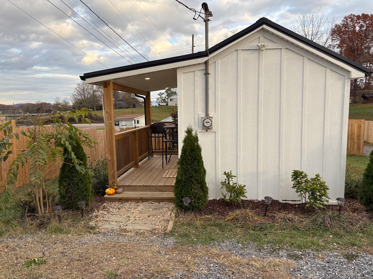 Väikemaja asub suure kruusaparklaga suure garaaži taga. See on peateest väga eraldatud ja omapärane. Parkimisala asub väikemaja tagumise veranda taga, kus saad istuda ja nautida rahu ja vaikust. Oleme 1 miili kaugusel South Holstoni järvest. 2 miili kaugusel Creeper Trailist, 6 miili Main Street Abingdonist, 8 miili Bristoli kesklinnast, 10 miili Bristoli kiirteest. Meil on väikemaja kõrval põldudel põllumajandusloomad, kes on väga sõbralikud. Kõik põllumajandusloomad naudivad külalisi.
