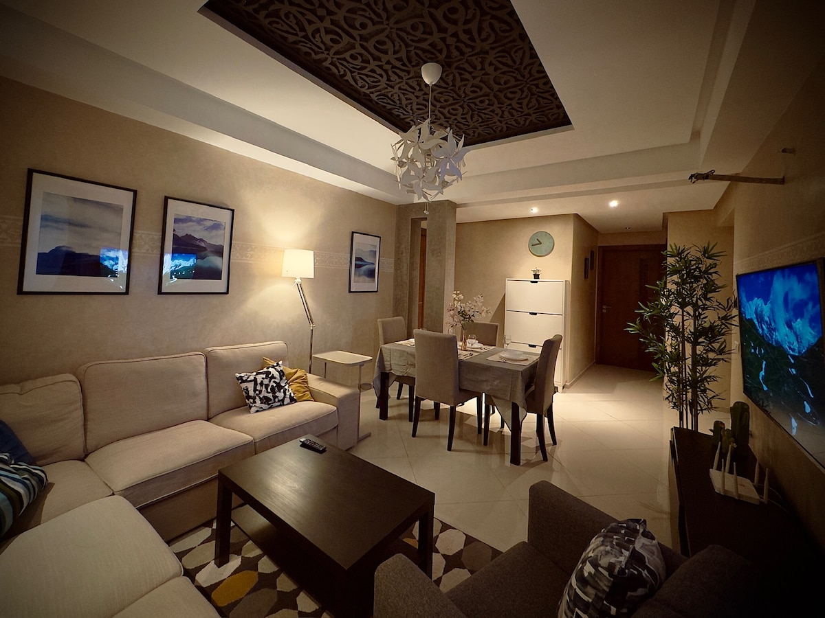 Ideaalne korter peredele, paaridele või ärireisijatele. 2 magamistuba: 1 kaheinimesevoodi 1 üheinimesevoodi Elutuba + söögituba (6 inimest) Varustatud köök põhimugavustega Kuum dušš, WC-pott, peegel, laitmatu puhtus 2 rõdu + 1 terrass Kliimaseade, tasuta wifi, nutiteler Lift (korter asub 1. korrusel) Vaikne ja turvaline naabruskond, 15 minuti kaugusel Mehdia rannast ja 5 minuti kaugusel kesklinnast Eraisikust autojuht on soovi korral saadaval Motorollerite rentimine
