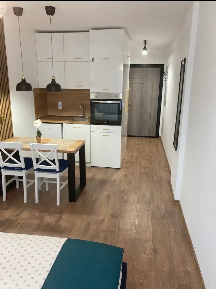Studio in closed complex Pearl, on 1 floor with elevator. Walking distance to the beach and the sea garden. Suitable for 1 or 2 people and infant or toddler, with the possibility of placing a baby cot. The kitchen is full equipped. Near the bus stop, hospital, supermarket, new children’s hospital. The complex has two swimming pools and children playground, which you can use for free. Parking is free on premises on the street.