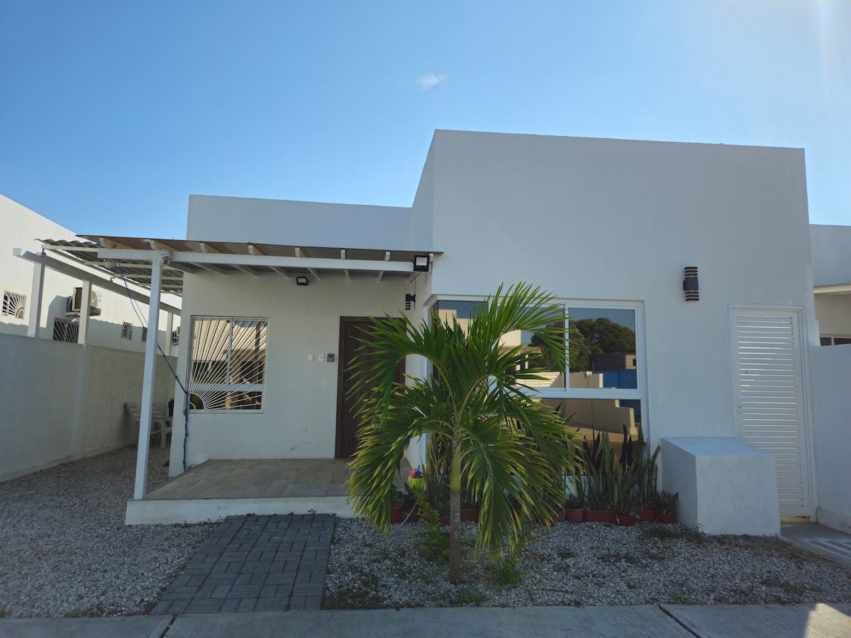 Hermosa casa en Playa Coral 🏖️ a pasos de la playa. Piscina con jacuzzi 🏊♂️ compartido, 2 habitaciones 🛏️, aire acondicionado ❄️, WiFi 📶, cocina equipada 🍳, patio y estacionamiento privado 🚗. Urbanización cerrada y segura 🛡️. Ideal para descansar y disfrutar en familia o con amigos.