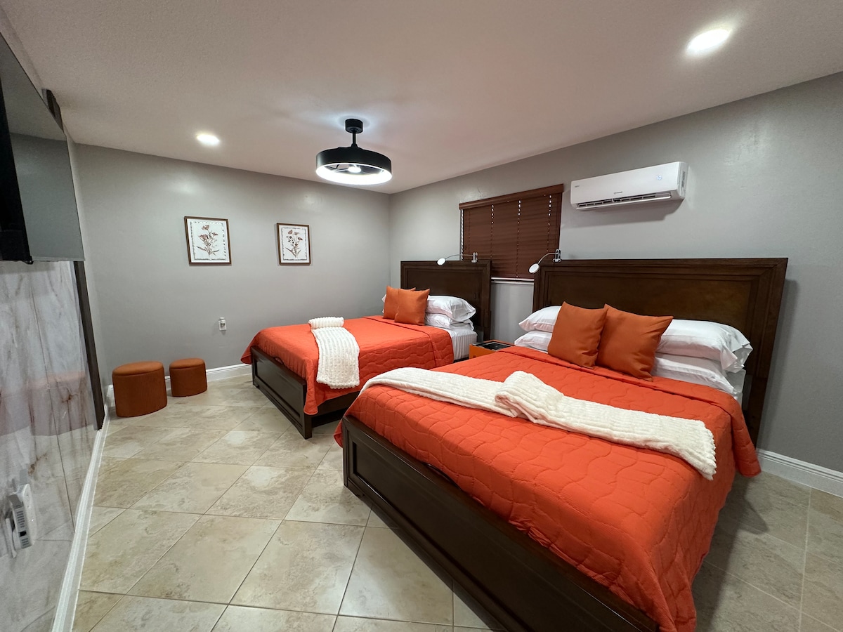 Welcome to our private accommodation in Pembroke Pines, the area's safest city. Experience a restful night on the king-sized bed and refresh in the soothing, natural-toned bathroom. The full kitchen is perfect for cooking your meals, while you can unwind on the futon/bed in front of the 55" Roku TV with Netflix Prime. Enjoy some fresh air in the private outdoor area. Ideal for both business and leisure travelers seeking comfort and privacy, we offer free laundry for stay over 3 nights.,,,