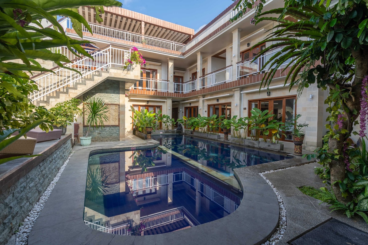 Toas on mugav voodi, diivanvoodi lisakülalise jaoks ja põhimugavused lõõgastavaks peatumiseks. Ükskõik, kas oled siin lühikeseks või pikemaks puhkuseks, on meie Deluxe tuba ideaalne baas sinu Bali seikluseks. Asub 10 minuti kaugusel Ngurah Rai rahvusvahelisest lennujaamast ja ka jalutuskäigu kaugusel supermarketist, erinevatest eelarvesõbralikest restoranidest, meelelahutuskohtadest ja mõnest kuulsast suveniiripoest, nagu Joger ja Krisna.