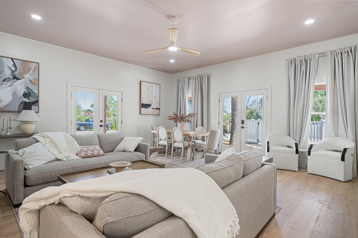 ÄSJA EHITATUD LUKSUSLIK MAAMAJA, KUS ON PRIVAATNE/SOOJENDUSEGA BASSEIN* JA GOLFIKÄRU Santa Rosa ranna südames 30A lähedal. See rannamaja asub puude vahel, kuid vaid mõne minuti kaugusel valgetest liivarandadest. Naudi päeval päikese käes ja lõõgastu ning lõõgastu öösiti rahuliku metsaga ümbritsetud välialadel. See on nagu ühest maailmast otse teise astumine. Tule ja lõõgastu ning naudi selle hubase puhkekoha rahu ja vaikust.