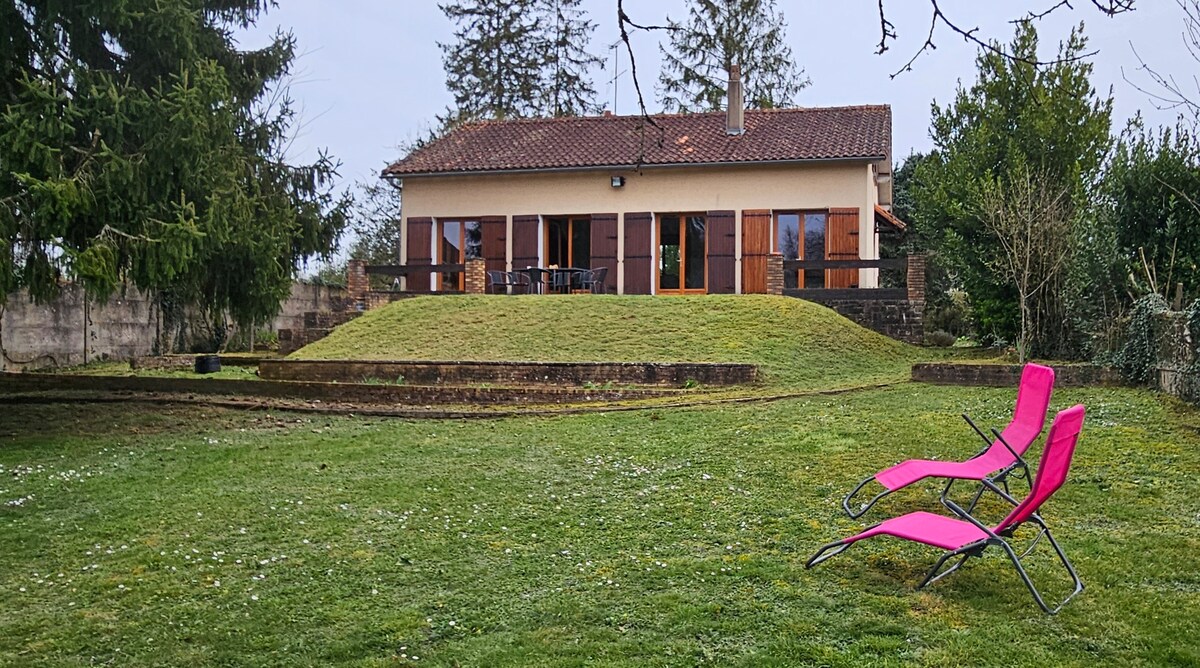 Meeldiv maja suure 3200 m2 aia südames, 30 km kaugusel futuroscope 'ist, 36 km kaugusel ahvide orust, 10 minuti kaugusel Chauvigny keskaegsest linnast ja selle kotkasetendusest, 10 minuti kaugusel Abysséa mitme tegevuse keskusest ja selle krokodilliplaneedist, 10 minuti kaugusel Parc DéfiPlanetist ...... 3 magamistuba , 2 esimesel korrusel , 1 ülakorrus ...1 vannituba , 1 WC ...söögituba ja elutuba! 1 köök