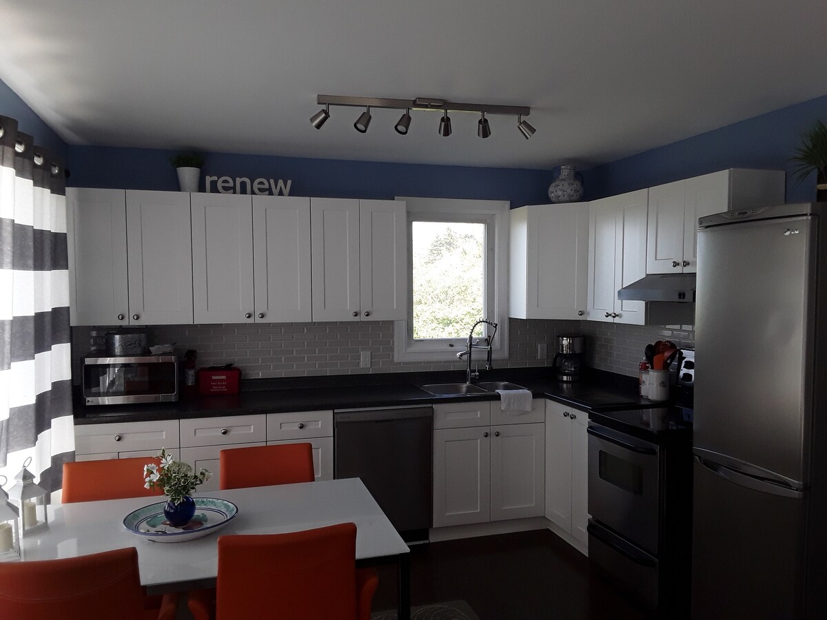 We are currently building on/renovating to add a larger living room, fireplace and an additional bedroom. I have the dates starting on September open for bookings. No cleaning fee!! The location says Tusket, it’s Quinan on Lake Kegeshook. The cottage is a farmhouse style with all white walls. Large windows and high ceilings allowing for great light.. The cottage is remote, quiet and perfect for relaxing. The cottage is a 20 mins drive in from the Tusket exit and 35 minutes to Yarmouth