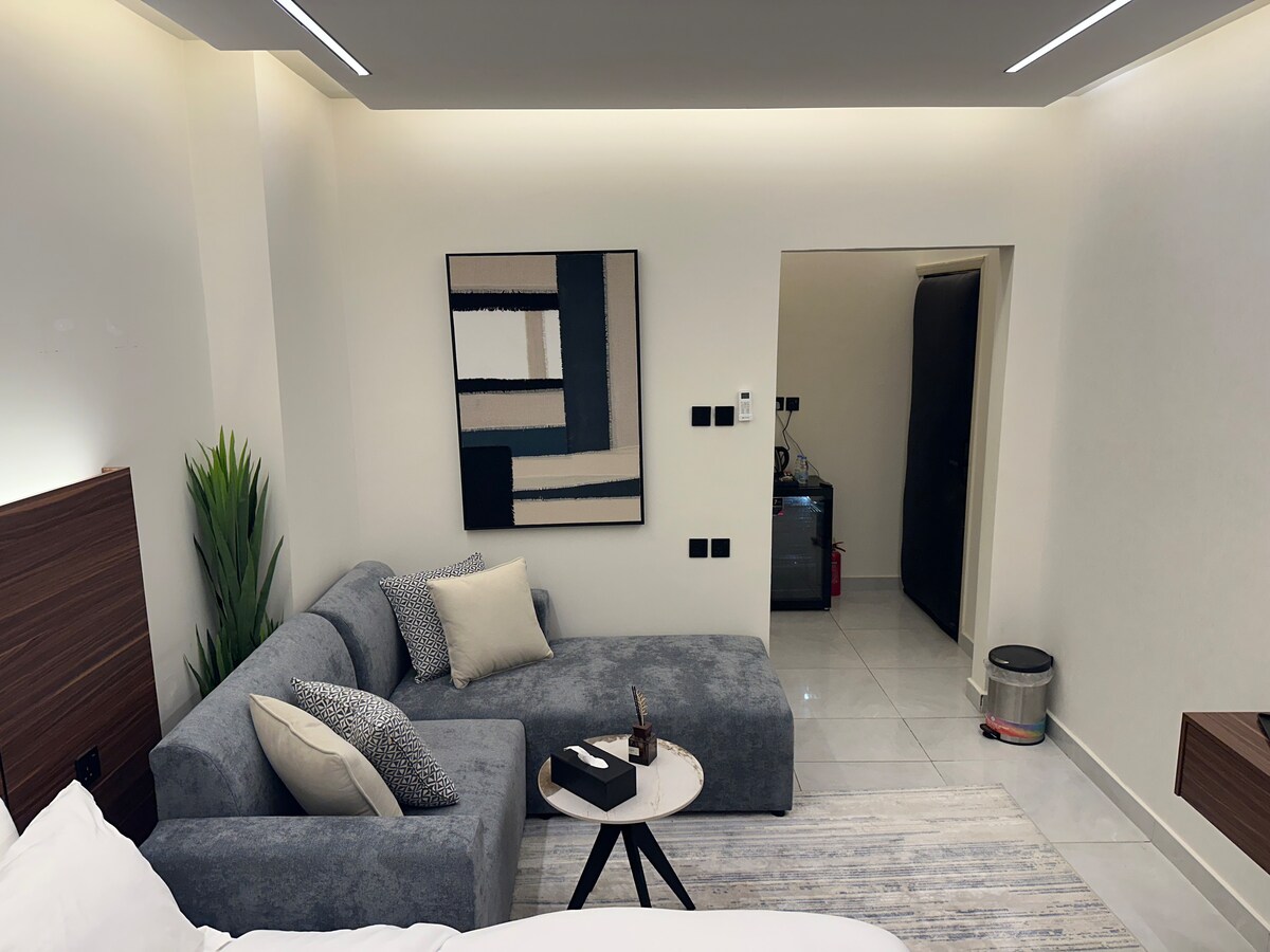 Stuudio ja Seyah 🏨 Asukoht: Hittini piirkond | Riyadh 📍 Kõigi teenuste ja ürituste lähedal 🛍️🎢 - Saad Square: 3 min - Riyadh Street: 5 min. - Leysoni org: 10 min - Financial District (KAFD): 15 min - Riyadh Park: 13 minutit - Lennujaam: 17 minutit Koosneb järgmistest osadest: Voodi + elutuba + köök + vannituba Teenused: • Nutikas juurdepääs • Külmik • 58-tolline nutiteler • Igapäevane koristusteenus • Kiire wifi