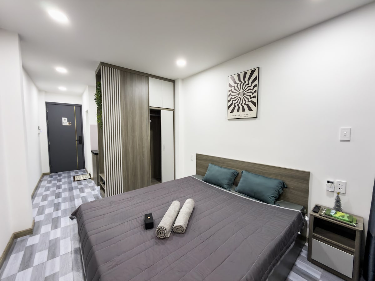 Avar 27 m² suurune hiljuti renoveeritud stuudiokorter 5-korruselises villas. Valgusküllane suure akna ja väikese rõduga värske õhu jaoks. Tuba on kujundatud troopilises minimaalses stiilis. Mugav lai kaheinimesevoodi, töölaud, diivanvoodi ja nutiteler Netflixiga. Asub kesksel kohal D1, D10 ja lennujaama lähedal. Jalutuskäigu kaugusel on ehtsad söögikohad, hubased kohvikud, kihavad ostutänavad ja kinod nagu CGV ja Mega GS. Ideaalne pikaajaliseks peatumiseks, see segu mugavusest, stiilist ja mugavusest.