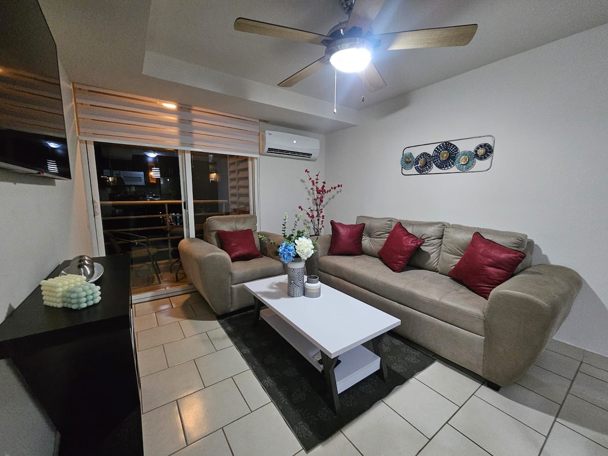 Nautige mõnusat viibimist kaasaegses mugavas korteris, kust avaneb imeline vaade. Kesklinnas asuv hotell sobib ideaalselt ärireisideks. Restoranid ja kohvik üle tänava, vähem kui 1/2 miili kaugusel ostukeskusest ja 3/4 miili kaugusel Centro Cívico Gubernamentalist. Sisaldab parkimiskohta, 24 h turvalisust, basseini, jõusaali, fiiberoptilist internetti. 82"elutoa televiisor koos ruumilise süsteemiga, 70" põhitoa televiisor, külmik koos jää- ja veedosaatoriga, pesumasin/kuivatusmasin