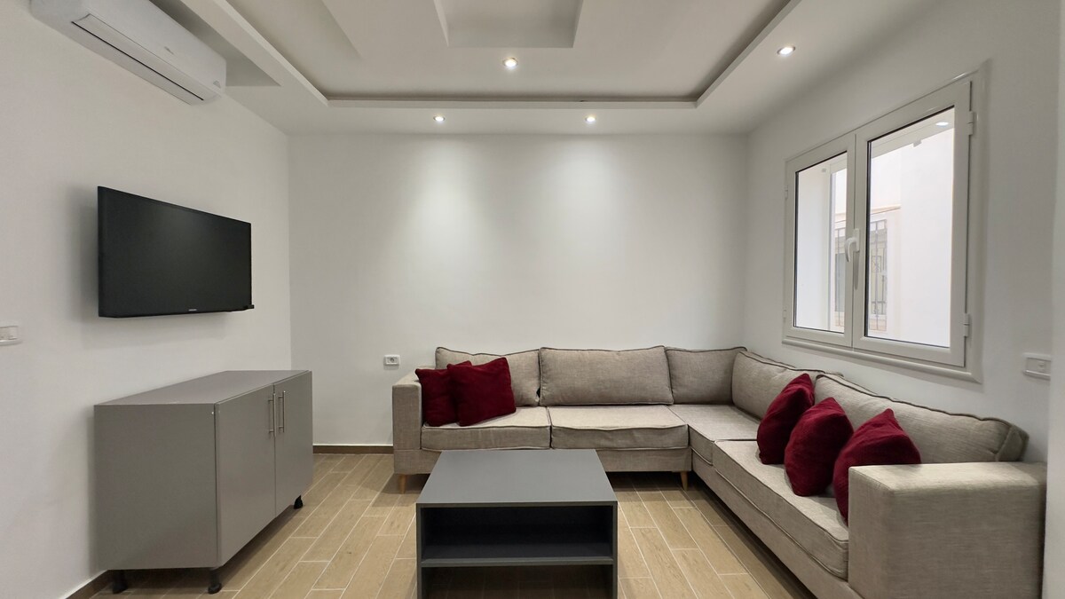 Tere tulemast Jassim Djerba majadesse! ✨ Korter #R0001 – S+2: Öine üürikorter щ🏠 🛋️ Konditsioneeriga elutuba 🛏️ 2 konditsioneeriga sviiti Lai 👕 kapp 🍽️ Hästi varustatud köök 🚿 2 kaasaegset vannituba Absoluutne 🌊 mugavus ja merevaade Kõigi mugavuste 🏬 lähedal Saadaval on 🚗 rendiautod 📌 Djerba, Corniche Houmt Souk, roundabout le Grand Bleu. Naudi ainulaadset elamust Jassimi majades! 🏡