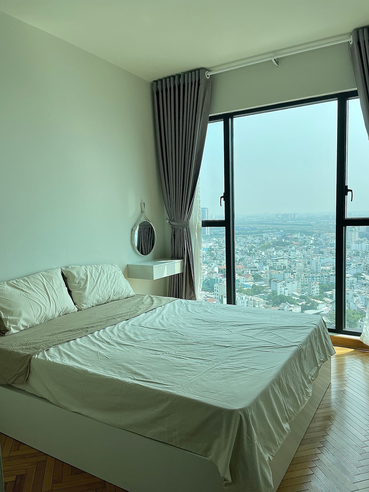 🌳 BS8 | Jalutuskäik Vincomi ja parki – parim asukoht 🌟 31. korruse korter vaatega jõele ja linnale 🛋️ Pehme diivan, Smart TV (Netflix, VieON, FPT Play…), elegantne ja õhurikas ruum 🛏️ King-suuruses voodi (1,8 m x 2 m) vedrumadratsiga, suur klaasaken, kliimaseade 🚿 Privaatne kaasaegne vannituba sooja/külma veega 🍳 Köök: külmik, pliit, mikrolaineahi, kööginõud, põhimaitselisandid 🧺 Lodža: pesumasin, kuivatusrest ✨ Ideaalne paaridele, ärireisideks või pikemaks peatumiseks