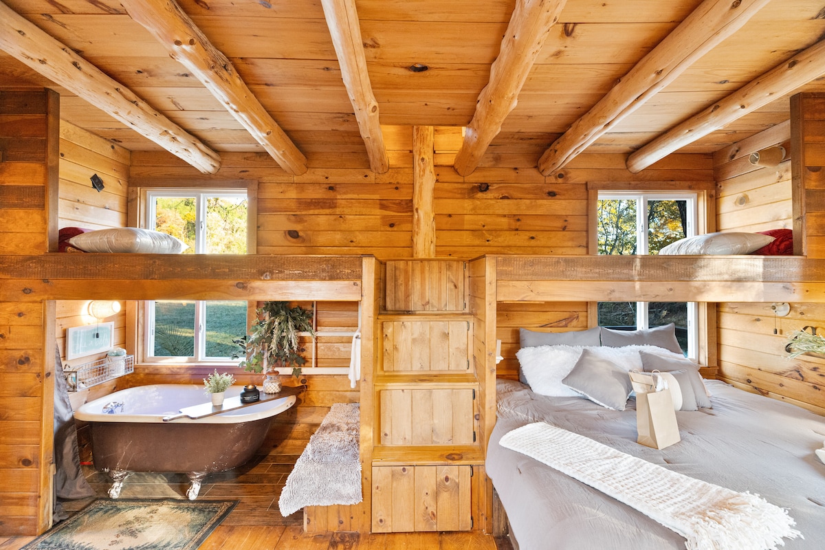 Selles ainulaadses ja rahulikus puhkemajakeses võta vabalt. Asub Beaver Creeki laagriplatsil. Vaade rahulikule jõele. Üks eriti lai kaheinimesevoodi ja väike diivan, kus saab hõlpsasti magada 2 last või 1 täiskasvanu. Sisustatud väikese külmkapi, mikrolaineahju ja Keurigiga. Kõik asub ühes avaras toas ja saun (pildil) on raja ääres. Majutuskohas on ka üldine pood, kus on olemas kõik vajalik. See on ideaalne koht lõõgastumiseks ja taastumiseks.