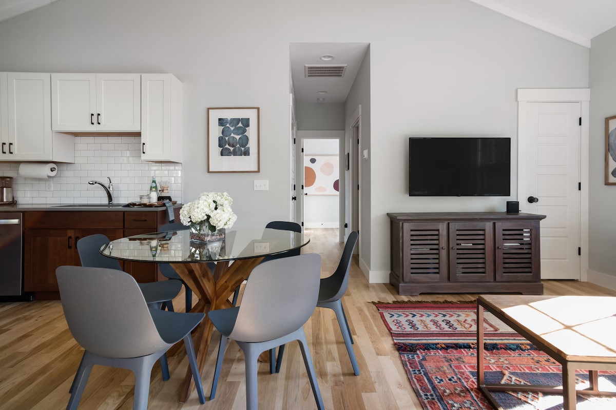 This bohemian haven offers vintage pieces, handmade and artful decor, and a sweet look at local life. ✔ Prime Location: Only 1 mile from downtown’s best attractions. ✔ Comfortable Living: Fully equipped kitchen, cozy seating, and hotel-quality bedding. ✔ Outdoor Bliss: Firepit, patio and mountain views. ✔ Bright and Minimalist: Stylish interiors with warm, inviting touches. ✔ Perfect for romantic getaways, work trips, or a peaceful retreat in any season.