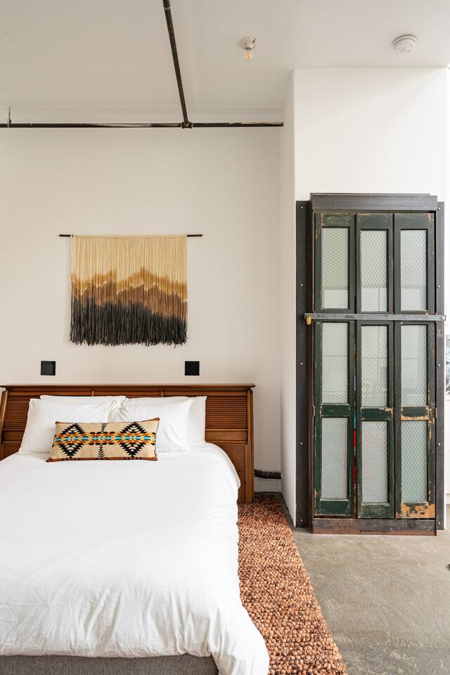 Sajandi keskel asuv stiil ja käsitsi valmistatud käsitöö mõlemalt poolt piirist on rikkalikud meie ainulaadses 500SF stuudios. Privaatse tagahoovi oaasi, naabruses asuva kunstigalerii ja kesklinnast vaid 1,5 miili kaugusel asuva magusa asukohaga on meie „ühetoaline hotell“ koht, kus peatuda. PANE TÄHELE: me elame linnaosas ja sellega kaasneb linnamüra. Soovi korral saame pakkuda oma külalistele valget müra ja kõrvatroppe, kuid kui sa magad kergelt, ei pruugi meie majutuskoht sulle sobida.