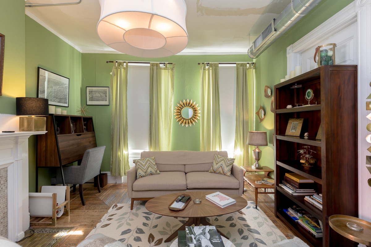 Tere tulemast meie võluvasse 3. korruse stuudiosse, mis asub Victoria-aegses majutuskohas NE Arts 'i linnaosa südames! Selles hubases puhkepaigas on palju loomulikku valgust, mis voolab läbi katuseakende, valgustades ilusate taimedega kaunistatud ruumi, luues rahuliku ja kutsuva õhkkonna. Selles veetlevas sadamas on soe kamin, mis sobib ideaalselt jahedatel õhtutel lõõgastumiseks. Pane tähele, et voodi pea lähedal ja vannitoas/köögis on madal vahemaa.