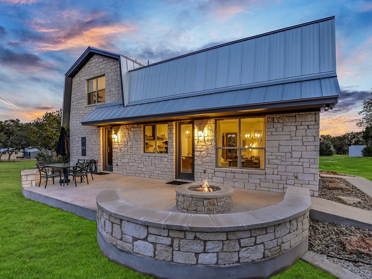 This artful rural retreat is a mix of quaint charm and modern elegance. Connect with a loved one or simply disconnect from the world. Watch the sunset or stargaze in complete privacy from the porch or hot tub that overlooks a meadow encircled with trees. Step inside to a flood of natural light. Cook a meal in the fully stocked kitchen. Get a great night's rest in the organic king-size bed. Explore nearby wineries, breweries, and hiking trails. Austin is a short drive from here too!
