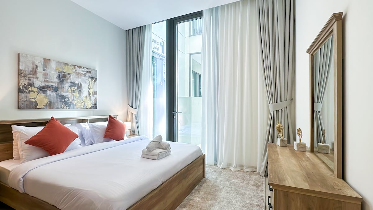 Ühe magamistoaga korter kõrgel korrusel kesklinnas Burj Khalifa kõrval. Katusebassein. King-size voodi. Tasuta wifi ja jõusaal. Metroo lähedal. Tere tulemast oma majutuskohta väljaspool kodu. Selles stiilses, kaasaegses ja keskses korteris on kõik olemas, et muuta sinu peatumine absoluutselt parimaks võimalikuks. Naudi elamist maailma kõrgeima hoone kõrval ilusa kodu luksusega. Sina oled ainult: 5 minutit Burj Khalifani 5 minutit Dubai ostukeskusesse 10 minutit La Mer Beachini 20 minutit JBR-ini